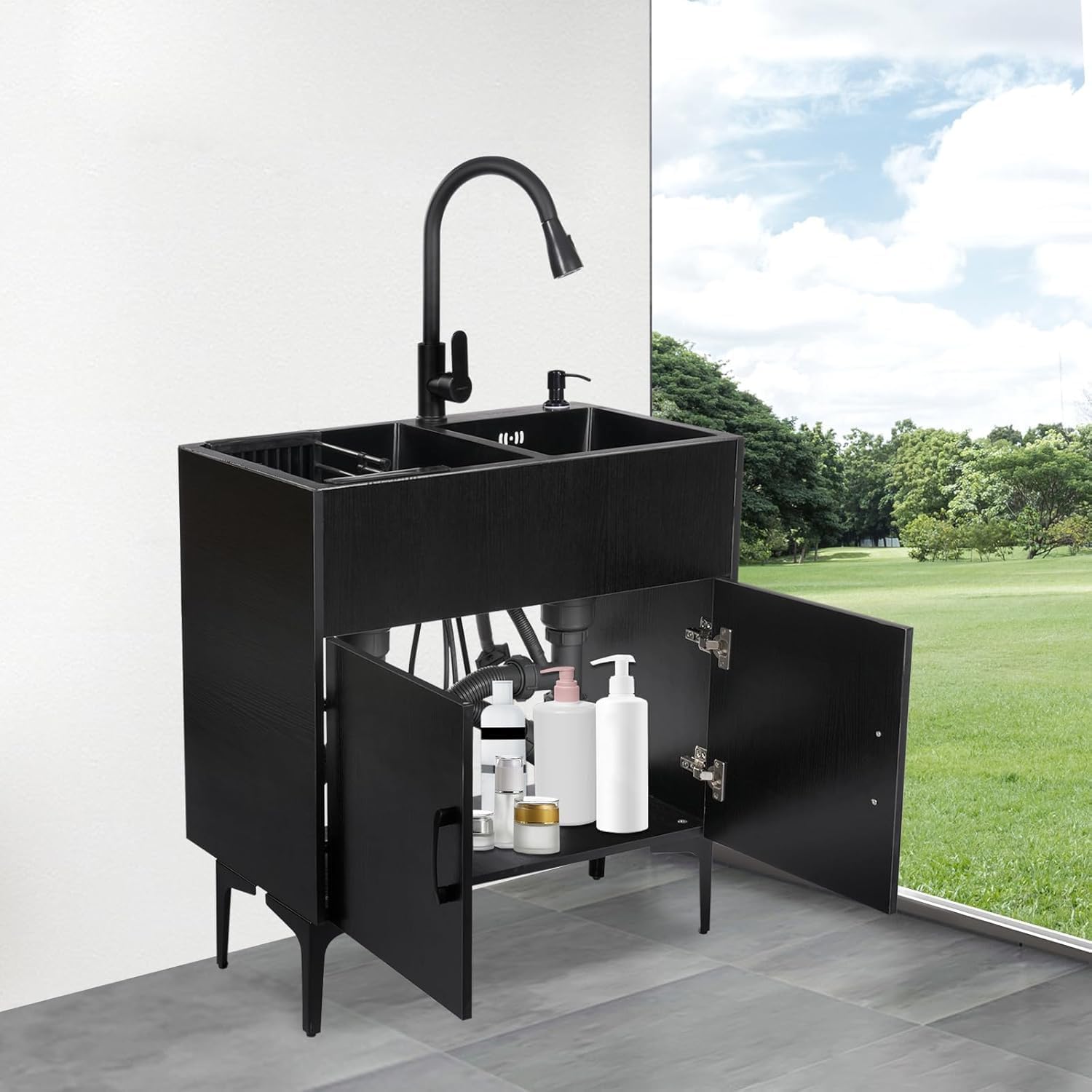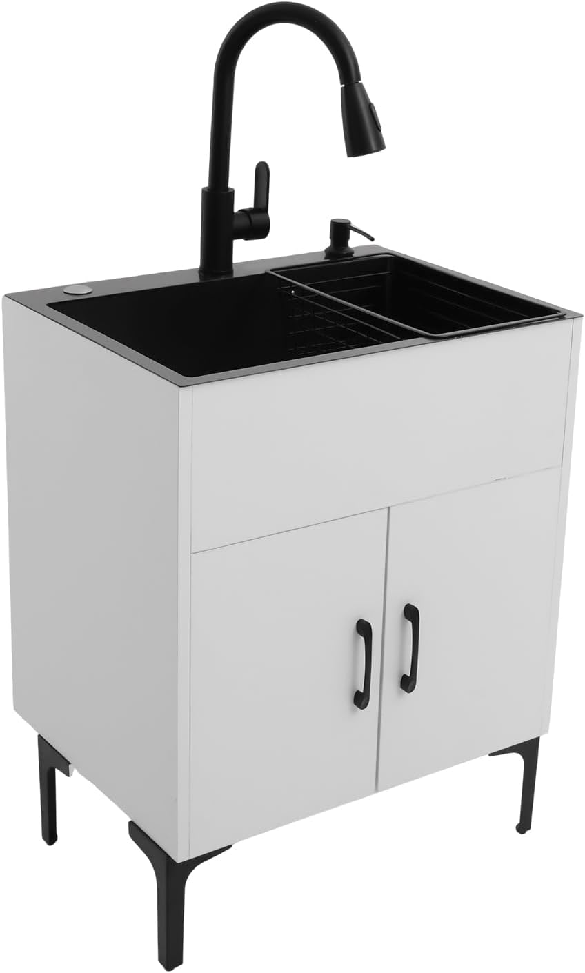 | Included Components | 1* Sink 1* Cabinet 1* Fauce 1* Soap Dispenser 1* Drain Basket 1* Cold Water Pipe 1* Hot Water Pipe 2* Water Pipes |