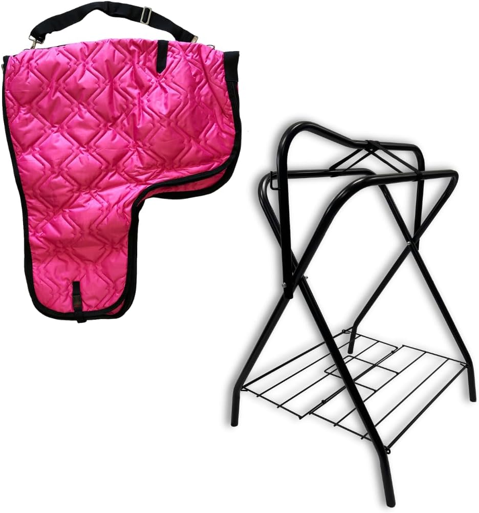 | Model Name | AJ Tack Freestanding Saddle Rack with Western Saddle Carrier Black with Turquoise Dots |