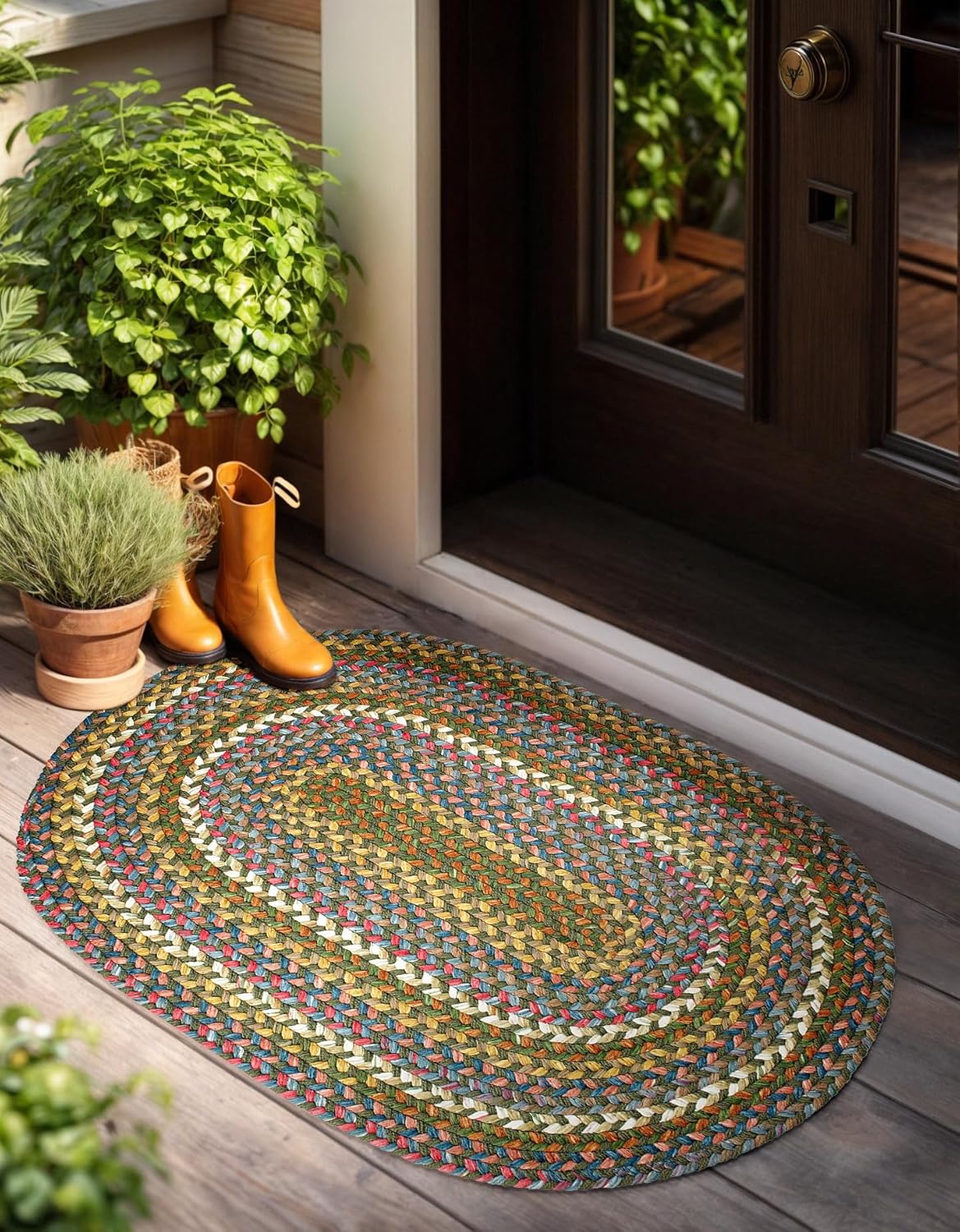 • Versatile & Stylish: Our braided area rugs combine timeless tradition with contemporary appeal. Available in an array of colors, shapes, and sizes to complement any home decor, this oval rug-shaped braided rug enhances your room decor with its classic-contemporary design that fits perfectly in entryways, kitchens, or as a colorful rug in your hallway.